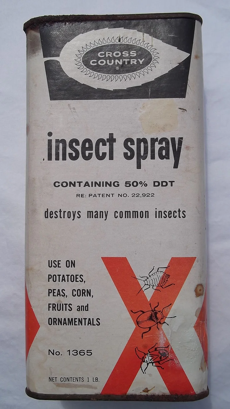 Bekämpningsmedlet DDT, Diklordifenyltrikloretan, användes flitigt under första halvan av 1900-talet, då det ansågs som något av ett mirakelmedel mot plågsamma skadeinsekter. Inte minst inom jordbruket. Upptäcksmannen bakom DDT belönades rentav med ett Nobelpris i medicin för sin – trodde man då- revolutionerande medel för att säkert och helt ofarligt slå ut exempelvis malariamyggor och tyfusbärande löss.